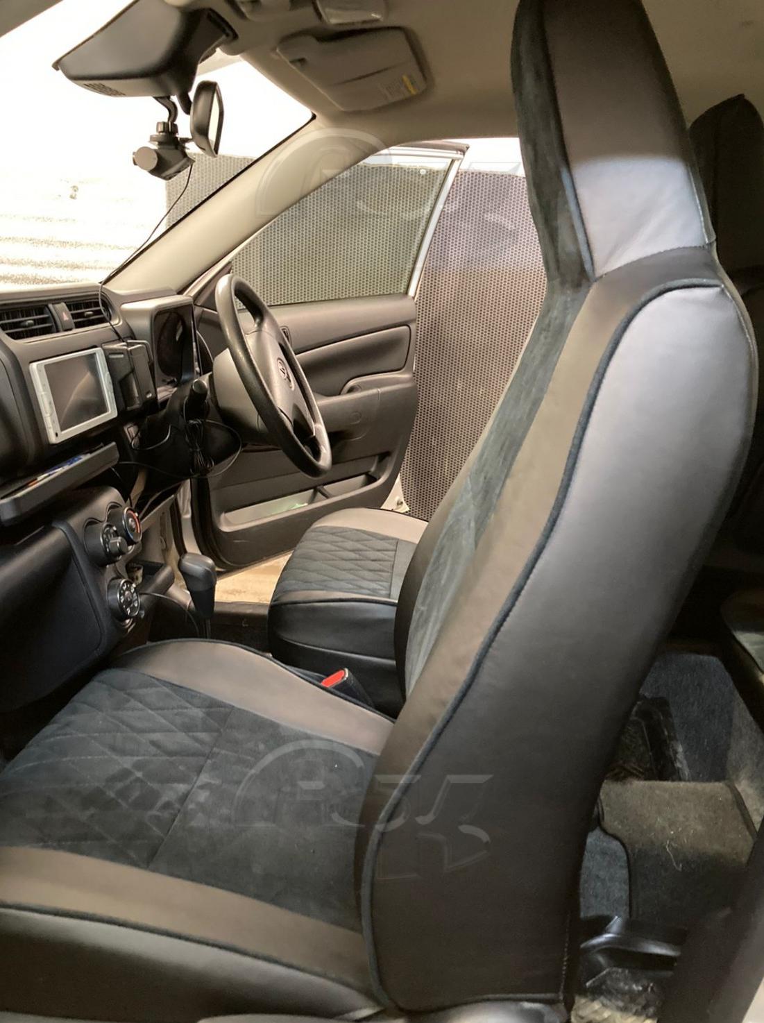 Штатные чехлы для Toyota Probox с 2014 по 2021 года выпуска. Комплект полностью подходит для автомобиля Toyota Succeed в аналогичных годах выпуска.